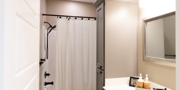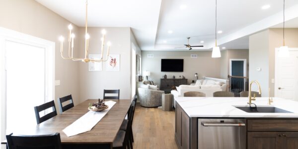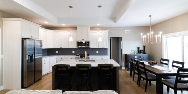 The exterior is designed for both curb appeal and function with Diamond Kote siding, soffit LED lighting, and a 576-square-foot attached two-car garage with a concrete driveway. A deck extends the living space outdoors, making it perfect for entertaining or relaxing.