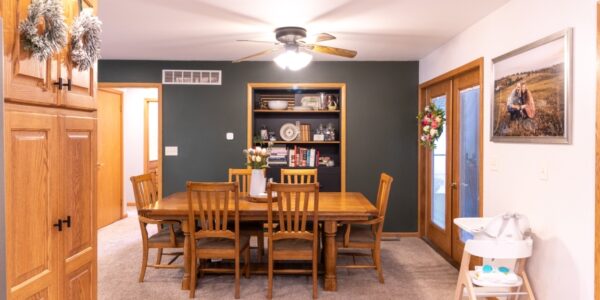 Welcome to this well-maintained ranch-style home in Sabetha, KS. The main level offers 1,536 sq. ft. of living space that includes 2 bedrooms and 2 full bathrooms. The basement has approximately 650 sq. ft. of finished living space that would be perfect for a living room, game room, media room, etc. Step inside to a warm and inviting living room featuring an electric fireplace, while the adjacent dining area includes built-in shelving. The kitchen is a true highlight, with beautiful wood cabinets and appliances including an oven/range, dishwasher, disposal, and microwave. Enjoy the convenience of a large laundry room complete with wood cabinets and built-in desk, plus washer and dryer included. Besides the 650 sq. ft. of finished living space in the basement, it also boasts a shop area and a storage room with built-in shelves. The home also features central AC/heat with humidifier and an attic fan for year-round comfort. Start your day or unwind at night on the cozy front porch and enjoy the backyard with a privacy fence. Located steps away from downtown Sabetha, you’ll have easy access to the public library and adjoining park, walking trail, splash park, and ball fields.